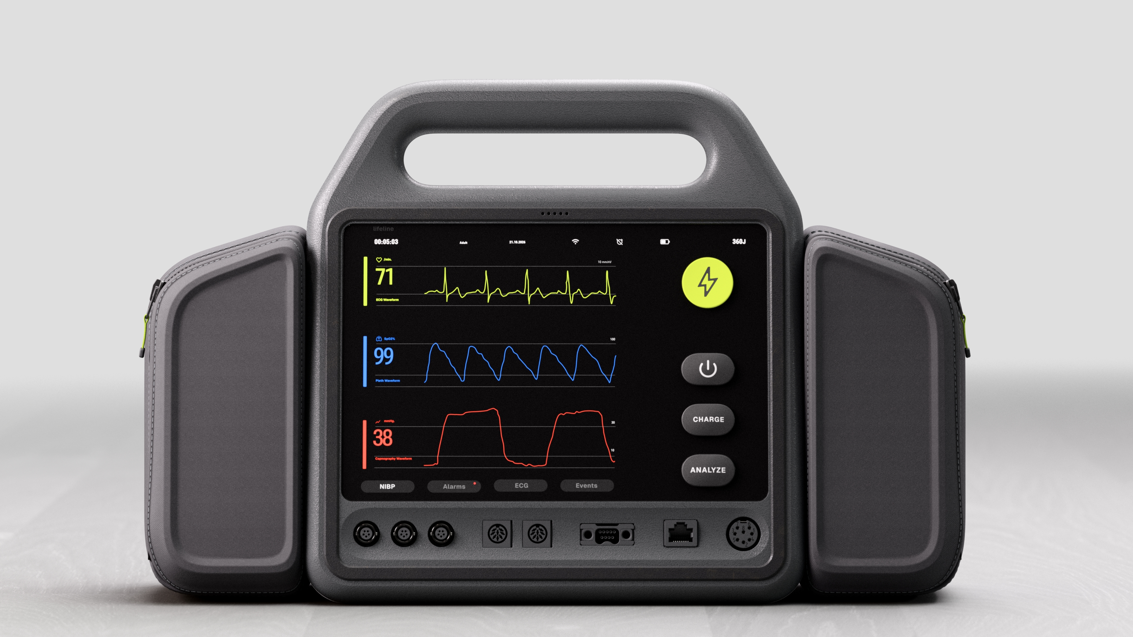 Every surface is optimized for rapid cleaning between uses. High-visibility lime accents aid quick identification of controls and pull tabs in high-stress situations.